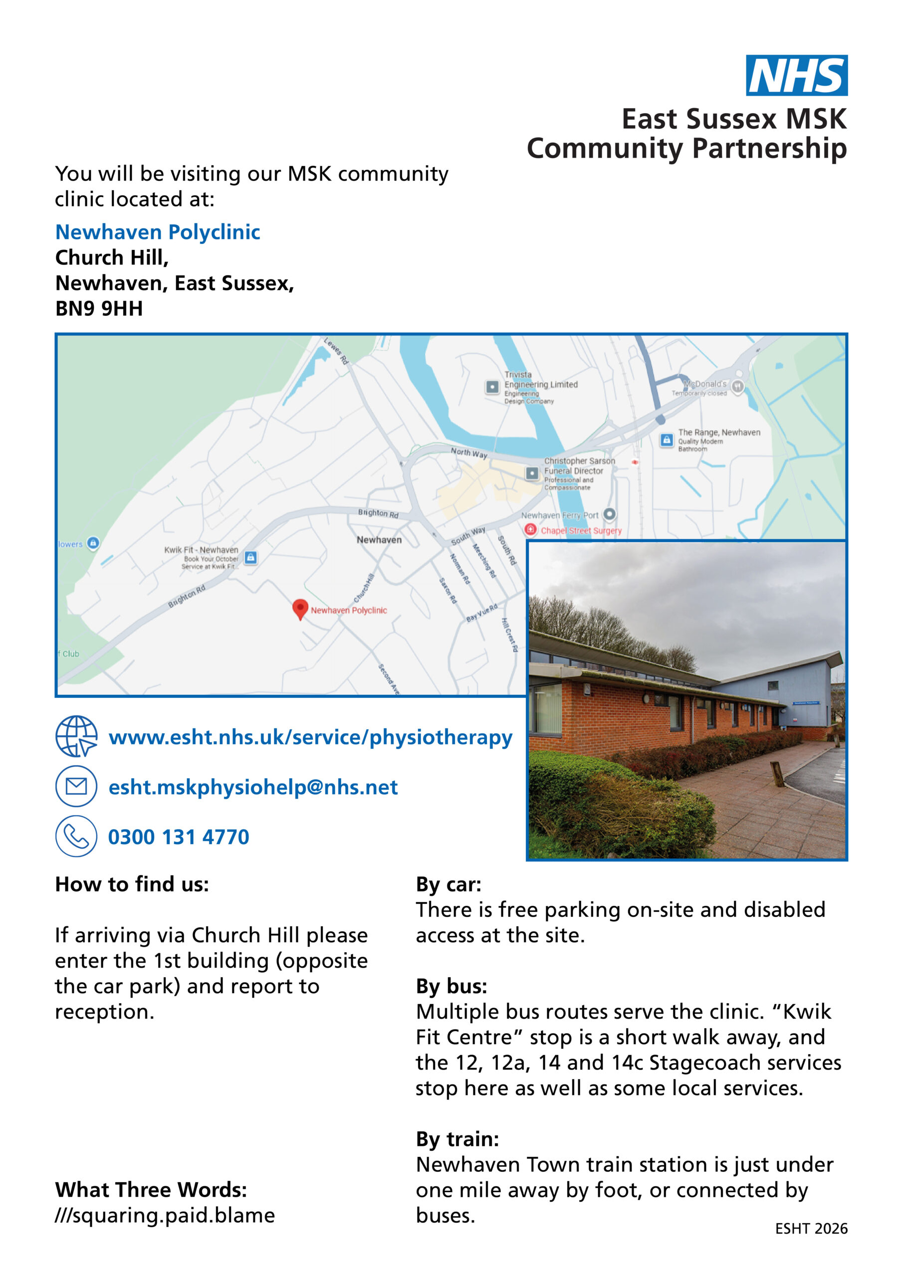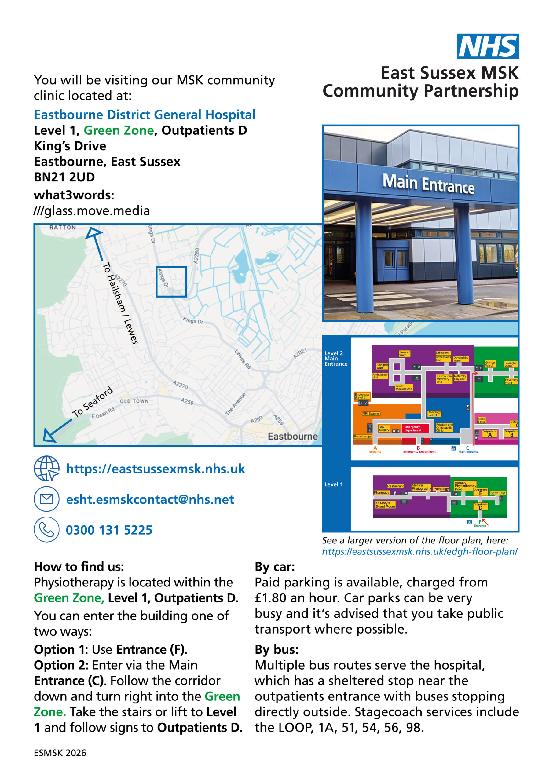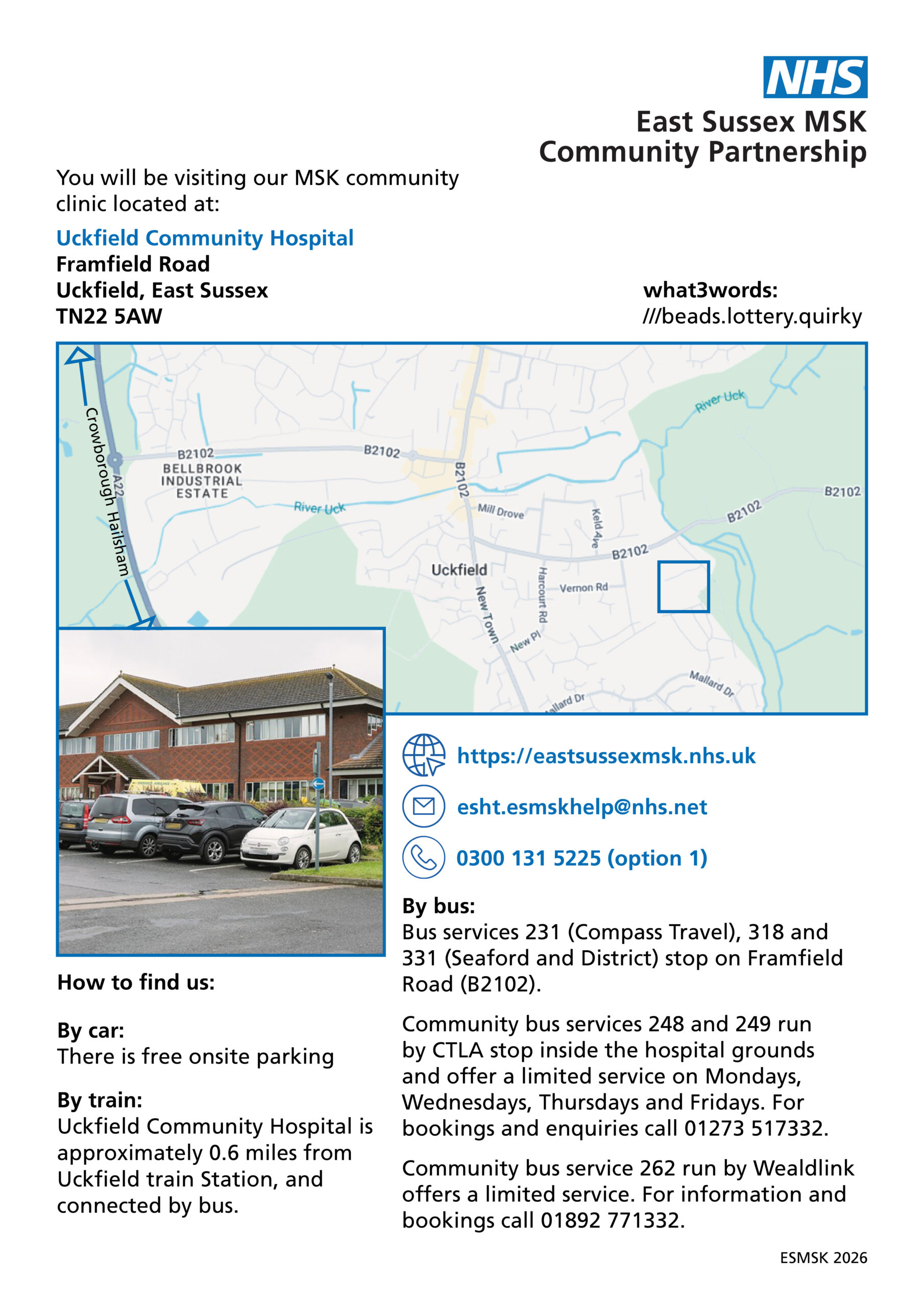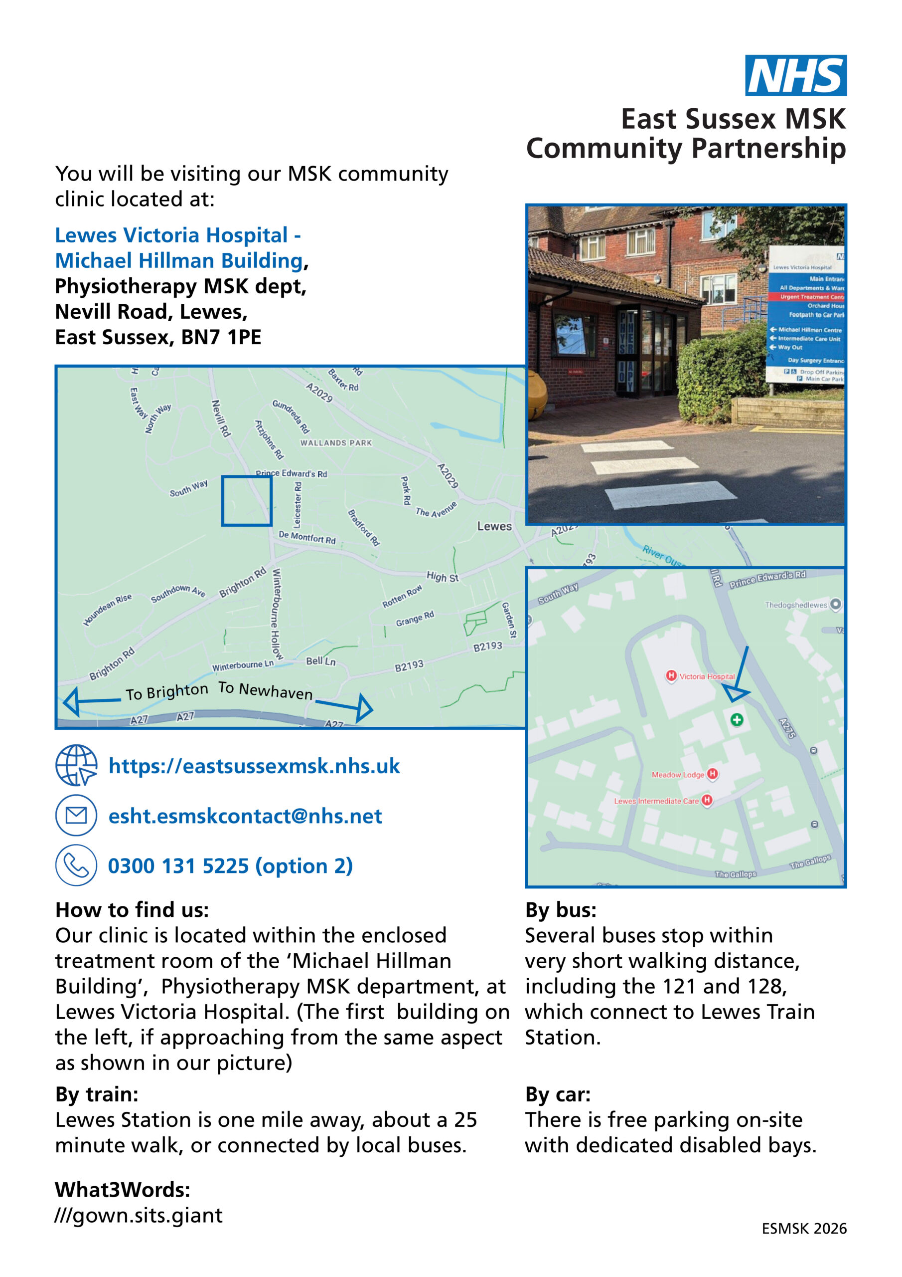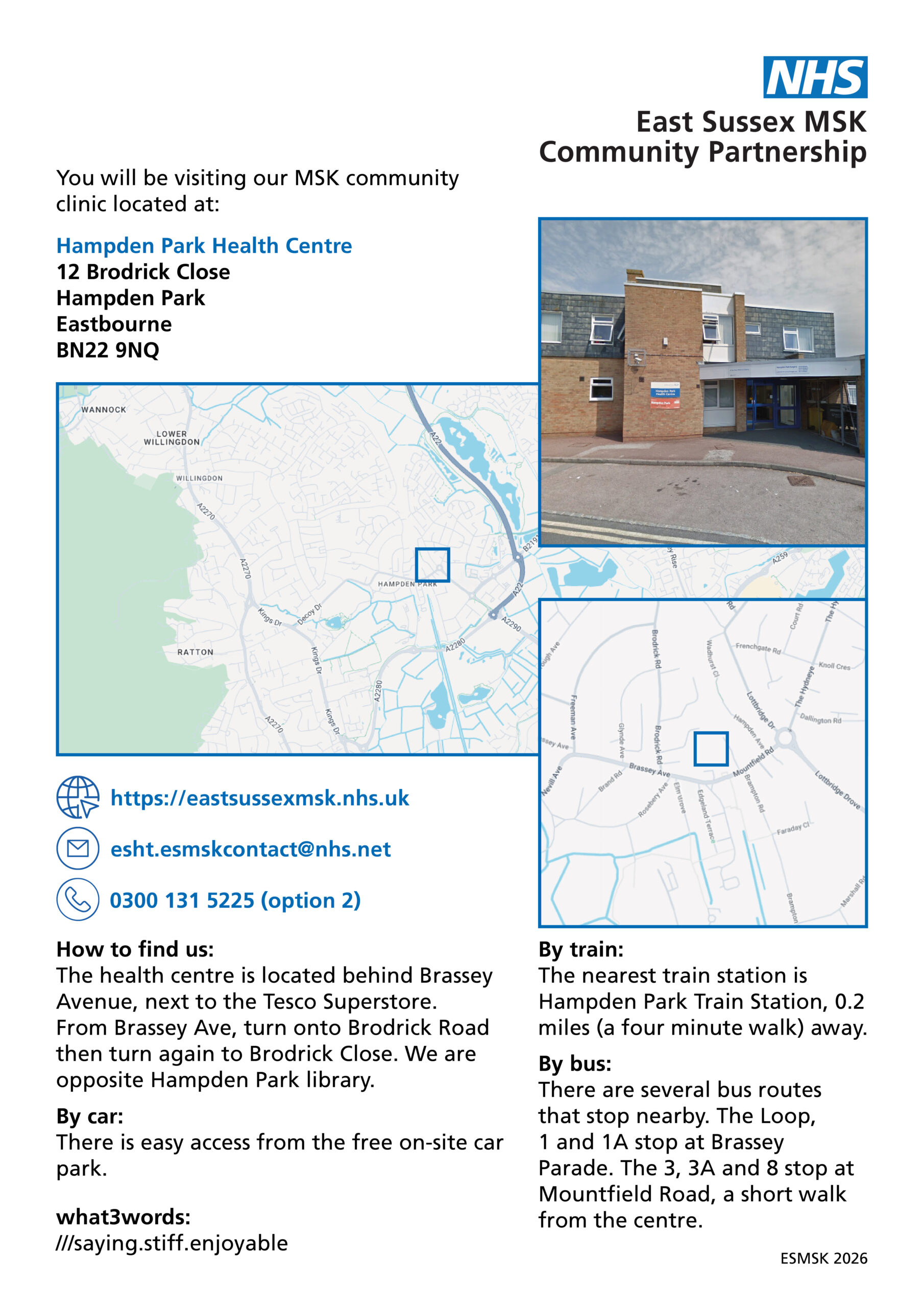 We deliver specialist MSK services from community clinics and through local physiotherapy providers across East Sussex. In some areas, these services are based in the same buildings, which can sometimes cause confusion.