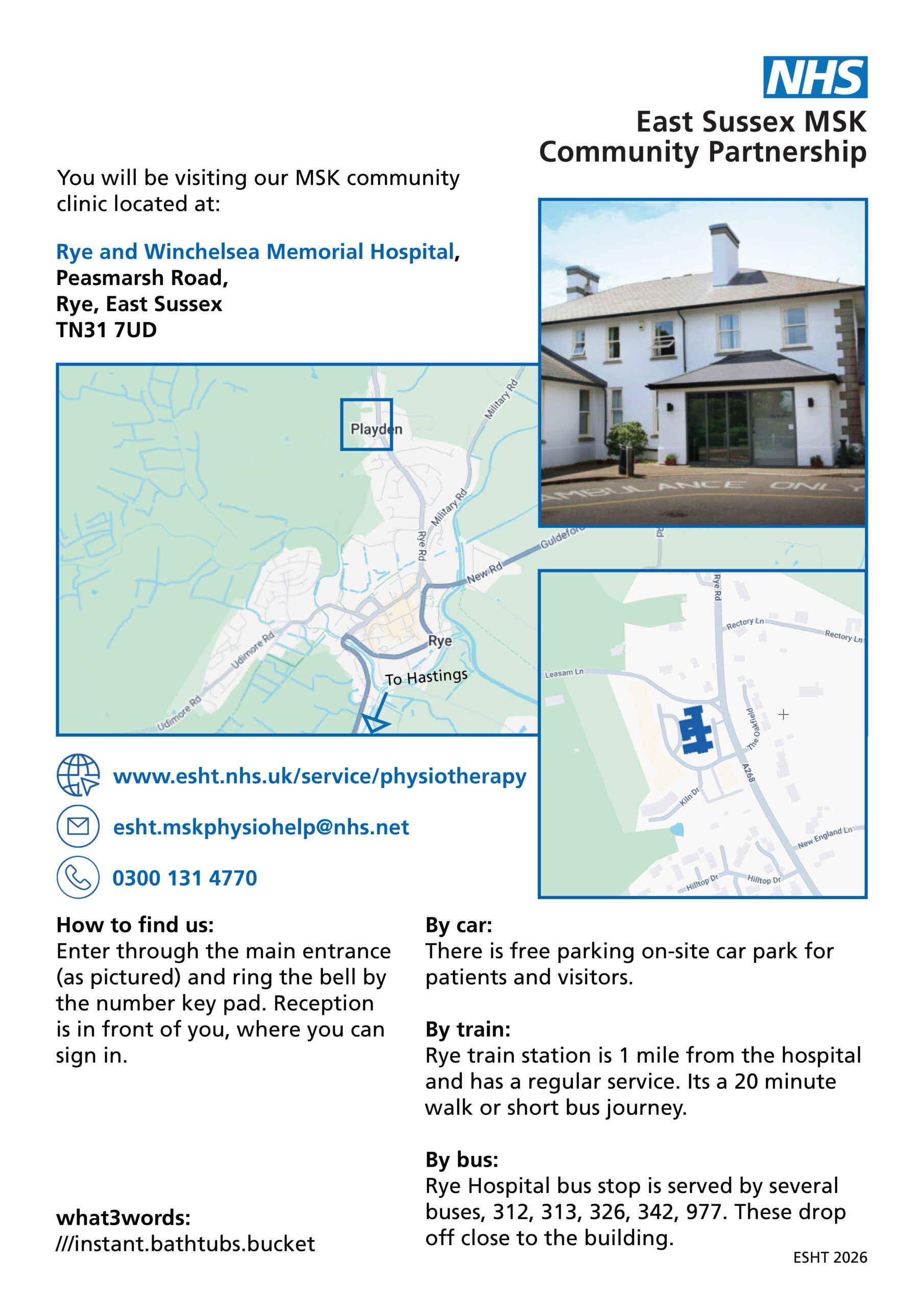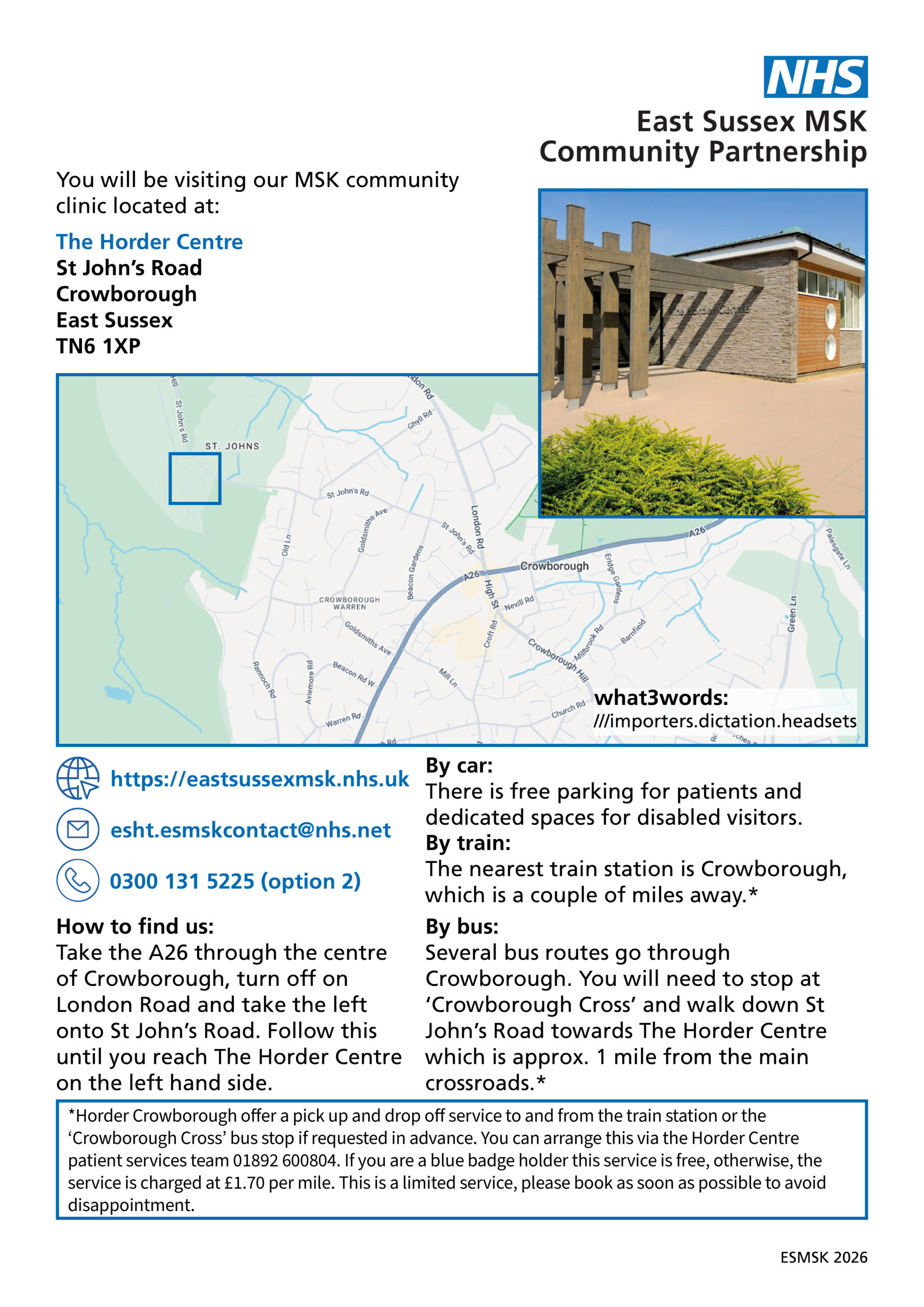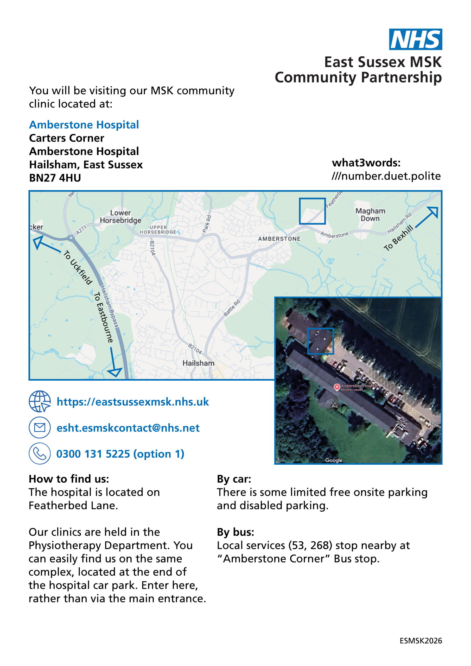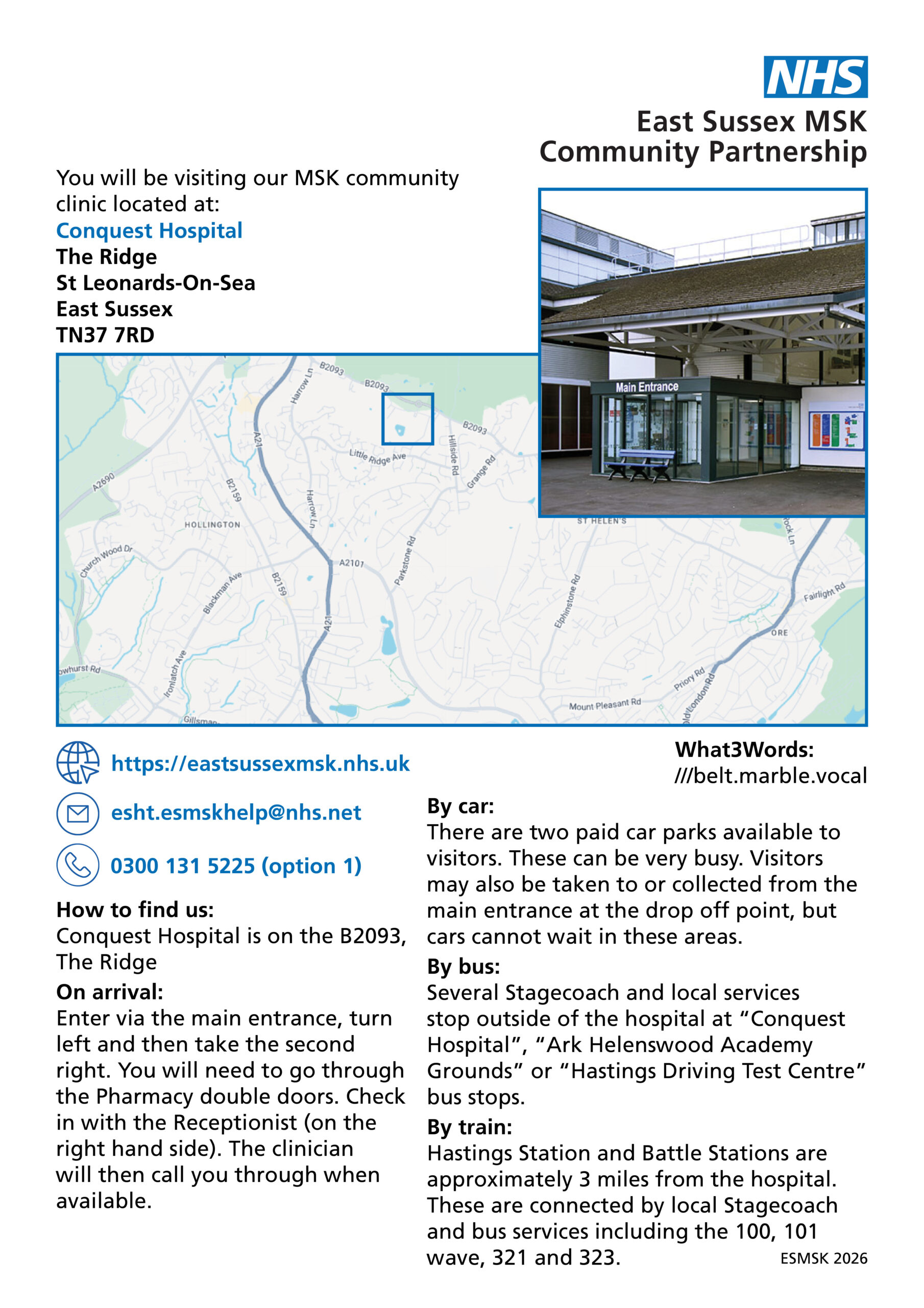 We deliver specialist MSK services from community clinics and through local physiotherapy providers across East Sussex. In some areas, these services are based in the same buildings, which can sometimes cause confusion.